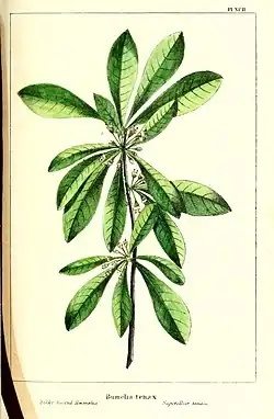 | Illustration of Sideroxylon tenax with the synonym Bumelia tenax | |