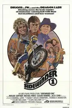 Sidewinder 1 is a 1977 American action film directed by Earl Bellamy and written by Nancy Voyles Crawford and Thomas A. McMahon. The film stars Marjoe Gortner, Michael Parks, Susan Howard, Alex Cord, Charlotte Rae and Barry Livingston. The film was released on September 21, 1977, by AVCO Embassy Pictures.[1][2][3]