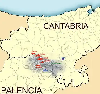 This system marks the boundary between the regions of Campoo in Cantabria and La Pernia in Palencia of Castile and León. It is one of the southernmost foothills of the Cantabrian Mountains range, and the last to rise over 2,000 metres (6,600 ft) in elevation.[3]