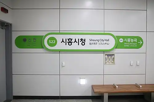 2. ^ "서해철도주식회사" [Siheung City Hall Station]. www.seohaerail.co.kr. Retrieved 2023-07-31.