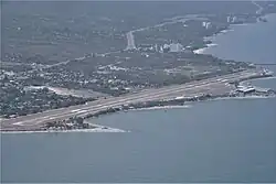 Simón Bolívar International Airport (Spanish: Aeropuerto Internacional Simón Bolívar)[1] (IATA: SMR, ICAO: SKSM) is an international airport serving the city of Santa Marta, Colombia. The airport is located 14 kilometres (8.7 mi) south of Santa Marta city center, on the shores of the Caribbean Sea. 18 kilometres (11 mi) north of the municipality of Ciénaga in Colombia.