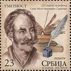 Simeon "Sima" Milutinović "Sarajlija" (Serbian Cyrillic: Симеон "Сима" Милутиновић "Сарајлија", pronounced [sǎːʋa milutǐːnɔʋit͡ɕ sarǎjlija]; 3 October 1791 – 30 December 1847) was a Serbian poet, hajduk, translator, historian and adventurer.[1][2] Literary critic Jovan Skerlić dubbed him the first Serbian romantist.[3]