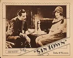Sin Town is a 1929 American silent Western film directed by J. Gordon Cooper and William K. Howard and starring Elinor Fair, Ivan Lebedeff and Hugh Allan. It is a contemporary-set Western, in which two World War I veterans are wrongly accused of killing a rancher and arrested for murder. With the help of the rancher's daughter they escape and capture the real culprit.[1][2]: 412