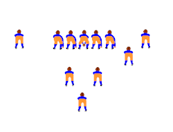 The double-wing formation in American football usually includes one wide receiver, two wingbacks, one fullback, and one tight end.