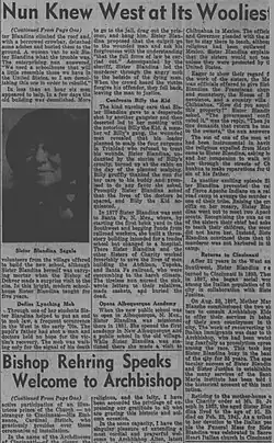 6. ^ Stelnicki, Tripp (30 March 2017). "Sister Blandina". The Taos News. The Santa Fe New Mexican. pp. P17. Retrieved 5 January 2025.