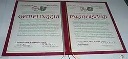 The earliest known town twinning in Europe was between Paderborn, Germany, and Le Mans, France, in 836.[2][37] Starting in 1905, Keighley in West Yorkshire, England, had a twinning arrangement with French communities Suresnes and Puteaux.[38][39] The first recorded modern twinning agreement was between Keighley and Poix-du-Nord in Nord, France, in 1920 following the end of the World War I.[18][39][40][41] This was initially referred to as an adoption of the French town; formal twinning charters were not exchanged until 1986.[42]