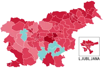 Peterle conceded immediately. In his first statements, Peterle said his defeat was a vote against the ruling Janša government, and that he had expected a better result. He added, however, that he would have regretted it if he had not decided to run for the office.[58] By midnight, unofficial results from the Electoral Commission gave Türk a lead of 68% vs. 32%. Türk won in all eight electoral units, with Peterle narrowly winning in only four of 88 electoral districts.[4] Together with the second round of the election, a referendum on a law providing for the nationalization of citizens' share in the major national insurance company was held as well. Nearly three-quarters of the votes were cast against the law.[4]