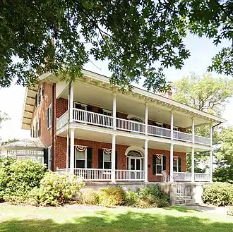 Van Bergen hired Frederick Law Olmsted Jr., the son of the then-deceased Frederick Law Olmsted, to design a landscape plan for the property.[2] Socialite Caroline Bates McKee purchased the house in 1909, followed by Brewster Chapman in 1913.[10] Chapman hired architect Richard Sharp Smith, previously supervising architect for the construction of Biltmore, to redesign the interior of the main level.[3] Changes included adding a side entrance, bathrooms, new mantles on the main level, mahogany doors, and oak flooring throughout. Exterior changes included adding decorative caps to the chimneys and the addition of a red slate roof.