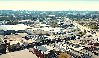 The main road features Smithfield Square, which has been in major redevelopment as of 2025 and occupies the largest land holding in Smithfield CBD. Upon completion, the square will have a net lettable area of 5,500 square metres (59,000 square feet), converting the two-level retail centre into a shopping mall for recreation and services.[19] Lying on the west side of Cumberland Highway and featuring another entry point from Victoria Street, the square will feature a childcare centre, swim school, gym and a medical centre, supported by a range of specialty retail stores. Its 200+ parking space is shared with Smithfield Tavern. The square contained a Coles supermarket in the second level, before it closed in late 2022 as part of the ongoing refurbishment.[20]