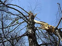 Soon after, the aircraft began hitting trees. One, a large birch with a trunk 30 to 40 cm (12 to 16 in) wide, ripped off about 6.5 metres (21 ft) of the left wing, including the left aileron. The resulting asymmetrical lift caused an uncommanded roll to the left. Within five seconds, the aircraft was inverted, hitting the ground with the left wing, followed very shortly after by the nose. The nose impact resulted in forces exceeding 100g, which killed everyone on board instantly.[13] Even without the birch tree and subsequent roll, the excessive angle of attack would have led to an aerodynamic stall approximately two seconds after impact with that tree, which would also have led to a fatal accident.[13] According to the Polish report, safety areas around every aerodrome are mandated by international regulations (including Polish and Russian law) to prevent situations where aircraft or aerodrome operation could be compromised by obstacles in the immediate vicinity. A thorough analysis of terrain reveals that obstacles were present in the safety area, with many trees exceeding the permitted height limit (mostly about 10–11 metres (33–36 ft)).[16]