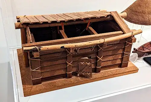 The Snohomish and their associated groups permanently occupied at least 25 villages throughout their territory. Villages were composed of at least one longhouse, and larger villages such as hibulb often had smaller houses and a potlatch house (sgʷigʷialʔtxʷ) for specifically for ceremonies. Some villages, notably the village at hibulb, had large cedar palisades which protected the village. Low class villages, such as the village at č̓ƛ̕aʔqs, did not.[33]