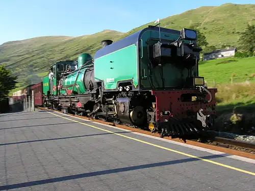 ![]() 138 'Mileniwm'/'Millennium' arriving at Snowdon Ranger station with a southbound service from Caernarfon to Rhyd Ddu | |||||