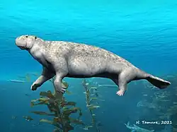 1. ^ a b c d e f g h i j k Díaz-Berenguer, Ester; Badiola, Ainara; Moreno-Azanza, Miguel; Canudo, José Ignacio (March 23, 2018). "First adequately-known quadrupedal sirenian from Eurasia (Eocene, Bay of Biscay, Huesca, northeastern Spain)". Scientific Reports. 8 (1): 5127. Bibcode:2018NatSR...8.5127D. doi:10.1038/s41598-018-23355-w. PMC 5865116. PMID 29572454. S2CID 4299433.