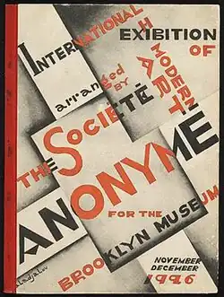 Société Anonyme, Inc. was an art organization founded in 1920 by Katherine Dreier, Man Ray and Marcel Duchamp. The society sponsored lectures, concerts, publications, and exhibitions of modern art, including the International Exhibition of Modern Art at the Brooklyn Museum in 1926. Between 1920 and 1940 they held 80 exhibitions showing mostly Cubist and abstract art. Their galleries in their "first modest headquarters" were at 19 East 47th Street.
