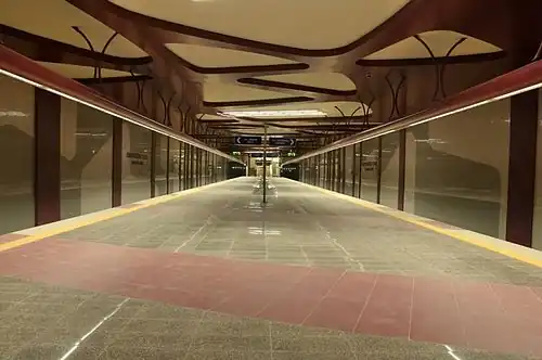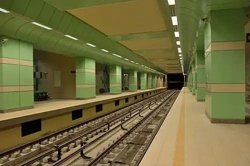 The construction of the section from Mladost I to Business Park Sofia station (2.62 kilometres (1.63 mi), with three new underground stations) began on 25 April 2013, and was completed on 8 May 2015.[7][13] It cost BGN 85,767,683 (EUR 43,852,320), VAT exclusive, and serves the majority of the second most densely populated area in Sofia.[14][15] Part of the sections of "Sofia Airport" - "Iskarsko Shose" and, Ovcha kupel" -, Krasno selo" are not underground.