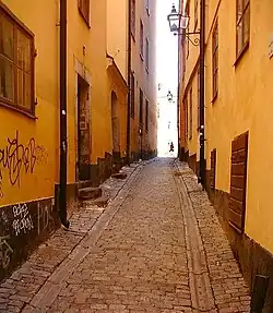 Solgränd (Swedish: "Sun Alley") is an alley in Gamla stan, the old town of Stockholm, Sweden. It connects the Stortorget square to the street Prästgatan. It is a parallel street to Storkyrkobrinken, Ankargränd, Spektens gränd, and Kåkbrinken.