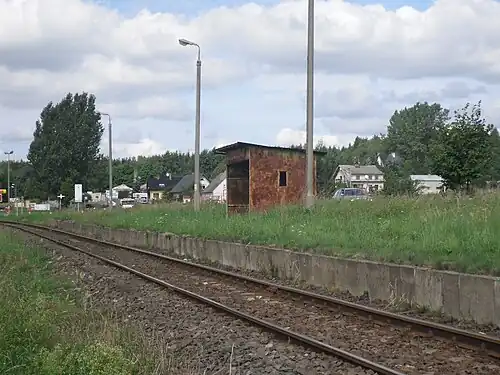 Somonino–Kartuzy railway was established in 1901 as a connection between Kartuzy and Kościerzyna. It was a typical Prussian line designed to connect the capitals of neighboring counties.[3] The section of the current Somonino–Kartuzy railway was opened on 14 November 1901, but passenger trains did not begin operating until 1 December. After 16 days, train services were suspended due to a severe winter that caused a derailment of a train traveling between Kościerzyna and Kartuzy.[4] In 1909, a station was built in Kartuzy.[5] Between 1918 and 1930, following Poland's regained independence and until the construction of the Polish Coal Trunk-Line, the Kościerzyna–Kartuzy line was the only connection to Gdynia that bypassed the territory of the Free City of Danzig. As a result, despite being classified as a local line, traffic was significant.[6] Additionally, the location of the station in Kartuzy was inconvenient, as trains had to change direction, which involved turning the steam locomotives.[7] After 1930, the line became strictly a local one, but its importance grew compared to the period before 1918, as it became the shortest connection between Kartuzy and Gdynia.[3]