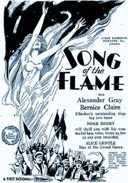 Song of the Flame is a 1930 American pre-Code musical film photographed entirely in Technicolor. Based on the 1925 operetta of the same name, the film features a screenplay by Gordon Rigby adapted from the musical book written by Oscar Hammerstein II and Otto A. Harbach for the operetta. The movie also features many of the songs from the operetta which used lyrics by Hammerstein and Orbach and music by George Gershwin and Herbert Stothart. The film was produced and distributed by First National Pictures. It was the first color film to feature a widescreen sequence, using a process called Vitascope, the trademark name for Warner Bros.' widescreen process. The film, based on the 1925 Broadway musical of the same name, was nominated for an Academy Award for Sound Recording (George Groves).[2] It is part of the tradition of operetta films, popular at the time.