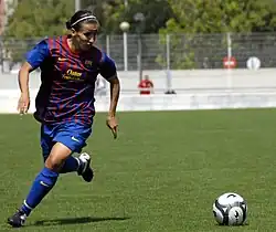 With previous passages for Rayo Vallecano, FC Barcelona, NWSL club Western New York Flash and Atlético Madrid,[5] she won the women's Primera División seven consecutive times (three with Rayo Vallecano and four with Barcelona) from 2008–09 until 2014–15.
