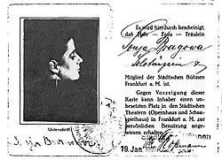Sonja Bragowa Soloist Dancer. Membership's Card of Städtischen Bühnen Frankfurt a. Main