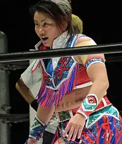 Kato had an excessive sports history in her childhood, practising track and field and volleyball in elementary school, handball in junior high school and javelin in high school. Despite her father's objections, she eventually followed her childhood dream, to be a professional wrestler, and took part in a professional wrestling audition held by Chigusa Nagayo.[2] After passing the audition, Kato began training with Nagayo in October 1994.[2] She made her debut on April 15, 1995, facing fellow debutante Meiko Satomura at the first ever event held by Nagayo's Gaea Japan promotion.[1][2][3] Just before the debut match, Kato's father, whom Nagayo had managed to convince to support his daughter's dream of becoming a professional wrestler, died in a traffic accident.[2] On November 2, 1996, Kato and Satomura became the inaugural AAAW Junior Heavyweight Tag Team Champions.[1][4] Through Gaea Japan's working relationship with World Championship Wrestling (WCW), Kato made her American debut on November 29, 1996, in Wheeling, West Virginia, losing to Kaoru in a WCW Women's Championship tournament match.[5] Kato returned to WCW in April 1997 to take part in a tournament to determine the inaugural WCW Women's Cruiserweight Champion, losing to Malia Hosaka in her semifinal match.[6] On December 27, 1997, Kato won the High Spurt 600 Tournament, defeating Chikayo Nagashima in the finals.[7] After a sixteen-month reign, Kato and Satomura lost the AAAW Junior Heavyweight Tag Team Championship to Chikayo Nagashima and Sugar Sato on March 29, 1998.[8] After winning the High Spurt 600 Tournament for a second time in 1999,[9] Kato began suffering from various injuries which sidelined her from late 1999 to July 2000 and again from February 2001 to 2006.[2] During the time, Kato kept making non-wrestling appearances for Gaea Japan, including getting attacked and having her hair cut by the villainous D-Fix stable in late 2002.[10] When Gaea Japan went out of business in 2005, Kato was uncertain whether she would ever wrestle again.[2]