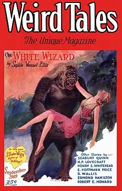 Weird Tales (September 1929), featuring a cover illustration based on Ellis's story "The White Wizard"