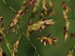 Sorghum propinquum is a species of wild Sorghum native to most of tropical Asia, from India to Southeast Asia, southern China, Malesia and Papuasia.[2] A perennial, rhizomatous diploid with the same number of chromosomes (2n=20) as the annual, non-rhizomatous diploid Sorghum bicolor, it is being studied for its potential for sorghum crop improvement.[3] In an ancient hybridization event with S. bicolor, it gave rise to Johnson grass (S. halepense), one of the planet's worst weeds.[4]