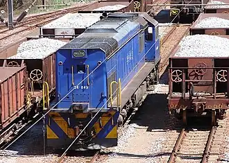 In Zambia, the RSZ locomotive fleet included former ZR locomotives, but the rest of the locomotive fleet of all three operations consisted of South African GM-EMD Classes 34-200, 34-600 and 34-800 and GE Classes 35-000 and 35-400 locomotives from Spoornet and later TFR. These locomotives were sometimes marked or branded as either BBR or LOG or both, but their status, whether leased or loaned, was unclear since they were still on the TFR roster and still often worked in South Africa as well.[2] Class 34-800 locomotives which served with NLPI include the locomotives annotated "NLPI" in the "disposition" column in the table below.