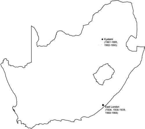 The first South African Grands Prix were held on a 24.4 km (15.2 mi) road course known as the Prince George Circuit, running through different populated areas of the coastal city of East London. This was shortened to 17.7 km (11.0 mi) in 1936. When racing resumed after World War II, a permanent circuit was built in 1959 that retained the name Prince George Circuit. The first World Championship F1 race in South Africa was held on 29 December 1962. In that race, Graham Hill took advantage of Jim Clark's mechanical problems with his Lotus and took race victory and the championship. The race was held at Prince George again in 1963, 1965 and 1966, the latter relegated to non-championship status as a new 3-litre formula came into effect on the same day.[3] In 1967, the race was moved to the Kyalami circuit near the high-altitude inland city of Johannesburg in the Transvaal, where it would remain as long as the South African Grand Prix was on the official Formula One calendar.