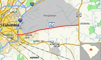 South Carolina Highway 262 (SC 262) is a 14.750-mile (23.738 km) primary state highway in the U.S. state of South Carolina. It serves primarily as the southern border of Fort Jackson.