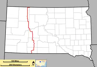 South Dakota Highway 73 (SD 73) is a state route that runs across western South Dakota. It begins at the Nebraska border, north of Merriman, Nebraska, as a continuation of Nebraska Highway 61. It runs to the North Dakota border, where it continues as North Dakota Highway 49. It is just more than 255 miles (410 km) in length.