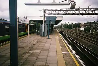The station opened on 3 July 1933 with access from both sides of the railway via a footbridge to the single island platform serving only the Watford DC line; this footbridge (which started at the bottom of the embankment) was later replaced by a pedestrian tunnel, cutting out a long climb for passengers entering the station. The station, designed by the architect William Henry Hamlyn,[8] was built in a more modern "concrete and glass" style construction including a "streamlined" waiting room rather than the brick and woodwork LNWR stations elsewhere on the DC line.