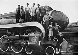 On May 17, 1941, SOU introduced their brand-new public streamlined Tennessean passenger train, which replaced the Memphis Special that ran between Washington, D.C. and Memphis, Tennessee.[12][13] It was frequently hauled behind SOU's new EMD E6 diesel locomotives,[14] but the Tennessean ran via Norfolk and Western (N&W) rails between Monroe, Virginia and Bristol, Tennessee, and N&W would not allow diesel locomotives running on their rails.[4][15] The SOU did not want get all tied up with their E6s pulling the Tennessean between Washington D.C. and Monroe.[4][15] They decided to streamline one of their Ps-4 locomotives to pull the Tennessean consist.[4][16] The result was No. 1380, which was scheduled for repairs at SOU's Spencer Shops in Spencer, North Carolina, and was given a streamlined design created by industrial designer Otto Kuhler.[4] Despite Kuhler being impressed with his design on No. 1380, SOU did not pay him at all.[4]