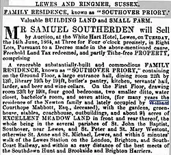 Sale notice for Southover Grange (sometimes called Southover Priory) in 1864