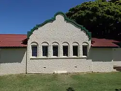 It was as part of the scheme of beautification at Southport that two bathing pavilions were erected, the Main Beach Pavilion and the other smaller building, the Southport Bathing Pavilion on the Esplanade close to the Southport railway station.[3] As the buildings neared completion, the owners of private bathing boxes were given one month's notice to remove the structures.[4][5] The two new buildings were opened on 20 December 1934 by the Minister for Works, Mr Harry Bruce.[6] During a speech at the ceremony, mention was made of Southport being primarily dependent on visitors, and if something was not done for their comfort and convenience (Southport) would lose them. A newspaper report described the design of the buildings as Spanish.[1][7]