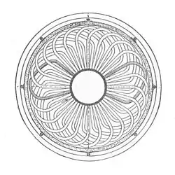 The water-tubes were single-turn loops aligned diagonally and arranged into horizontal tiers. The upper tube entry is vertically above the lower entry of the adjacent tube. In the original patent, tubes are hairpin-shaped with radial straight sections.[3] Later designs used a larger outer radius and "pear-shaped" tubes,[1] finally a tube shape that was almost the radius of the outer casing.[2] Reducing the curvature of tubes like this reduces the effects of expansion due to heating and the risk of leakage at the tube entries. The water level of these boilers was around 3/4 of the height of the tube tiers,[3] so that the upper tubes were filled with steam rather than water. Above the tube banks a single flat spiral tube was used as an economiser or feedwater heater.[2]