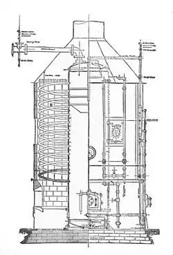 One advantage of these boilers was the rapidity with which they could be constructed. A factor in this was their pre-fabricated steel casings that were bolted together in sections.[5] Although their potential for high pressure was not made use of, they did gain a reputation for reliability and long service between overhaul.[2]
