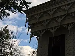 Spirit House, also known as Timothy Brown House or Brown's Hall, is a historic home located at Georgetown in Madison County, New York. It was built about 1865 and is essentially a square, wood-frame structure. The exterior features two-by-fours arranged vertically and scalloped at regular intervals. The use of the scallop pattern gives the Spirit House a highly textured surface and it is almost impossible to discern how it is constructed without close inspection. It also features a three tiered cornice with downward pointing keys. It was constructed as a residence and for meetings of Spiritualists in a large hall on the second floor.[2]