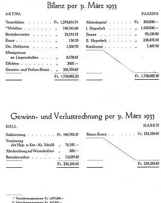 - ^ Publikation der Löschung nach vollendeter Liquidation im Schweizerischen Handelsamtsblatt 8 May 1964, Nr. 129, p. 1776.