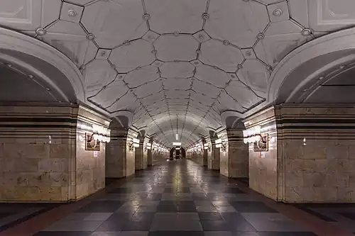 Sportivnaya (Russian: Спорти́внаяpronunciation) is a Moscow Metro station on the Sokolnicheskaya line. It is in the Khamovniki District in the Central Administrative Okrug of Moscow. Named for the nearby Luzhniki Olympic Complex, it opened in 1957. Passengers may make out-of-station transfers from Sportivnaya to Luzhniki on the Moscow Central Circle, which is about 200 meters away.[1]