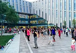 In the People's Republic of China, square dancing or plaza dancing (simplified Chinese: 广场舞; traditional Chinese: 廣場舞; pinyin: guǎngchǎng wǔ; lit. 'public square dance'), is an exercise routine performed to music in squares, plazas or parks of the nation's cities. It is popular with middle-aged and retired women who have been referred to as "dancing grannies"[1] in the English-language media. Due to its low cost and ease of participation,[2] it has been estimated to have over 100 million practitioners, according to CCTV, the country's official television network.[3]