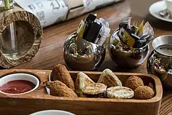 "Short eats" (colloquially called "shorties") are a ubiquitous category of savory and sweet snacks in Sri Lanka, encompassing items such as patties, cutlets, rolls, samosas, pies, and buns.[21] Though now deeply ingrained in Sri Lankan culture, their origins are a fusion of colonial culinary influences adapted and "Sri Lankanised" over the past 80 years. The diverse array of short eats reflects the island's history of foreign presence.[21] European influences (British, Dutch, Portuguese) contributed pies, pastries, fish patties, and the likely ancestor of the breadcrumb-coated cutlet (from the Portuguese bolinho).[22] Meanwhile Indians introduced samosas and vadais, while Chinese settler communities introduced the "Chinese roll," a spicy, deep-fried spring roll distinct from those found in China.[22]