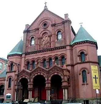 Rev. Michael J. Phelan became pastor in 1884. He completed the church and built the parish school, St. Cecilia's Institute, staffed by the Sisters of Mercy, who also conducted a home for working women.[5] The home for working women ceased operations in the late 1930s, leaving only the sisters in the building. In November 1956, the Sisters of the Atonement opened a kindergarten and day care on the first floor.[7]