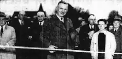 Highway 40 was established at the height of the Great Depression, during the spring of 1934. The subsequent improvement of the roadway employed several dozen men eight hours per day, six days per week at minimum wage as a depression-relief project.[33] On May 2, the Department of Highways (DHO) assumed the route of Highway 40 between Wallaceburg and Sarnia, including the entire length of the River Road. The 80.6-kilometre (50.1 mi) highway connected Highway 2 in Chatham with Highway 7 and Highway 22 in Sarnia.[34] The designation came just weeks before the 1934 Ontario general election that saw Lambton West incumbent Conservative MLA Andrew Robinson McMillen replaced by Liberal William Guthrie. As such, it was seen as a fruitless last-ditch attempt to garner votes.[18][35]
