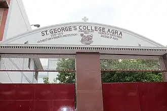 St. George's College, Agra, is one of the oldest convent schools in India. It is a Minority Anglo-Indian Christian Institution granted Minority Rights under Article 30 of the Indian Constitution. It is located near Mall Road and near to Targhar. The campus is approximately 40 acres (160,000 m2).The students are widely named as Georgians in the city. The school is accredited under the Indian Certificate of Secondary Education board for grade 10th and under the Indian School Certificate board for Grade 12. The school was established in 1875 as an Army School for British Armed Forces at Agra. With the passing by of time it started admitting students from civilian background as well. The college originated in a school set up by Father Joseph Rooney, an Irish priest from Navan, in the late 1840s. Rooney later founded St Peter's College, a Catholic boys school in Agra.[1]