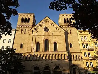 A new parish and church were needed in Wedding after the establishment of the German Empire, when many Catholics moved into the city of Berlin, especially workers.[1] An architectural competition was held, which was won by a design by Father Ludgerus, born Wilhelm Rincklake, a friar from Maria Laach. The Berlin architect Wilhelm Frydag revised the plans and Hermann Bunning supervised the construction which began in 1907.[1] It is located between houses on Müllerstraße between houses and has two towers.[2] The church was consecrated on 2 May 1909, dedicated to Saint Joseph, the patron saint of workers.[1]
