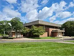 First on Father Buckley's list of parish improvements were a parochial school and auditorium-gymnasium, both completed in 1958. The school could accommodate 450 students and was complete with ten classrooms, a library, a science room, and a medical room. In addition to the school, Father Buckley also oversaw the construction of a new convent of brick and limestone which would house the five Sisters of Notre Dame de Namur who would staff the newly constructed school. Both the school and the convent were dedicated on 2 November 1958 by Archbishop Henry J. O'Brien of the Archdiocese of Hartford. The school first opened in 1958 as a junior high school, serving 165 students in grades seven and eight.[1] In addition, 1,800 children of the parish participated in public Catholic instruction classes. Continued expansion allowed the addition of the ninth grade in 1959 and the sixth grade in 1961 with the next lowest grades added each year thereafter. By 1966, St. Mary School served children in all nine grades.