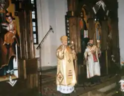 As a result of Operation Vistula, Ukrainians[4] appeared in the territory of Bytów County in 1947, resettled from the territories of southeastern Poland, who were mainly faithful of the Ukrainian Greek Catholic Church. The Ukrainian Greek Catholic parish was established in 1950, however the Greek Catholics did not have their own temple - liturgies were celebrated among other places in the chapel at the orphanage, private homes, and with many interruptions and troubles in Saint Catherine's church - among other things, in the Stalinist period, authorities forbade Greek Catholic priests from entering the territory of the voivodeship, which was associated with the lack of a priest in Bytów. Liturgies began to be celebrated permanently in the church from 1957, as a result of the Gomułka thaw.