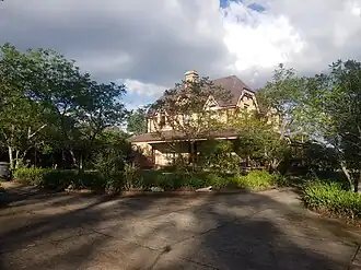 St Helens Park draws its name from a Gothic mansion built in 1887 by George Charles Westgarth, a Sydney solicitor. The mansion still stands at the southern end of St Helens Park Drive but it's not the oldest building in the suburb. That honour goes to a farmhouse on Appin Road called Denfield and Curtilage which was built in the 1830s by John Farley of Fisher's Ghost fame. Both buildings are listed on the Register of the National Estate.[2][3][4]