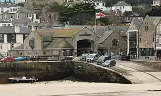 The replacement boat house was situated in Fore Street. This was used until 1911 when a new house was built on The Quay.[2] Nearby Hayle Lifeboat Station closed in 1920. The St Ives boat now covered a larger area, but this was made easier in 1933 with the arrival of a first motor lifeboat.[3] In 1964 an ILB was stationed at St Ives which was kept in a building in the Sloop Car Park on West Hill. These two boat houses were closed in 1993 when a new purpose-built house was opened at the landward end of West Pier.[2] In 2015 the 1993 boathouse was modified for the new Shannon class lifeboat and its Supacat launching rig. The work involved widening the main doorway, installation of a new fuel tank and upgrading of crew facilities.